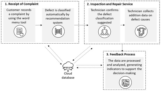 - Feedback process: The quality problems identified by the Warranty Service Department were reported to other sectors (e.g., design, production, material supply, etc.). This process was not based on the complaint database due to its limitations, but according to the maintenance team’s perceptions of the most frequently reported quality problems.