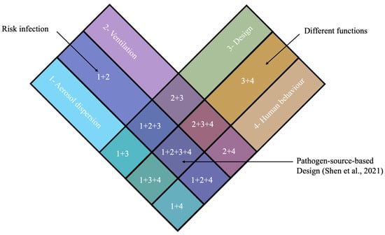 Studies that consider design parameters typically investigate the impact of the room size and volume on the infection risk, as well as the size, position, and number of openings such as doors, windows, and ventilation system’s inlets and outlets.