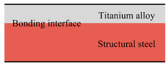 Titanium-clad (TC) bimetallic steel [1], an advanced composite steel consisting of metallurgically bonded titanium alloy and structural steel, has been widely used for tube sheets mainly because of the high corrosion resistance of titanium alloy and favorable mechanical properties of the structural steel [2]. Usually, structural steel is used as a substrate metal, and titanium alloy is used as a cladding metal, as shown in Figure 1. With the comparable production cost and higher corrosion resistance to austenitic stainless steel, the TC bimetallic steel has been widely used in the petroleum and chemical industries, and seawater desalination [2]. Given its excellent properties, TC bimetallic steel can also yield huge application potential in civil and structural engineering in the marine environment due to its outstanding structural performance, environmental friendliness, and full-life-cycle economy advantages. The primary manufacturing method of this bimetallic steel is the explosion bonding and hot-rolled bonding processes [3]. The explosion bonding is a solid-state metal joining process with detonation accelerating the cladding metal plate to a velocity at which a metallurgic bond is formed between the metals during collision [4]. While the hot-rolled bonding process is a more adequate and stable manufacturing method [5], through which a metallurgic bond is formed by the achievement of diffusion between the substrate and cladding metals [3]. At present, both manufacturing methods for TC bimetallic steel have been thoroughly studied [3,4,5,6,7,8], and the basic mechanical properties of TC bimetallic steel have also been preliminarily studied [9,10,11]. Studies investigating hot-rolled bonding TC bimetallic steel fatigue behavior are relatively limited [12,13]. Meanwhile, some investigations have studied the fatigue behavior of explosion-bonded TC bimetallic steel [14,15,16,17]. The fatigue design curve for explosion-bonded TC bimetallic has been proposed, with the fatigue propagation mechanism has been analyzed [16]. It has been indicated that the high-cycle fatigue properties of explosion-bonded TC bimetallic steels are in between compared with that of the two component metals [17]. Despite this, the existing fatigue studies are still insufficient to deeply understand the high-cycle fatigue mechanism of the TC bimetallic steel, or to clarify the influence of manufacturing methods and interfacial conditions on the mechanical properties of the TC bimetallic steel.