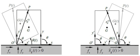 Early studies on the rocking response of a rigid block simply supported on a moving base were presented by Housner [], who first established the equations of motion of the rigid body and solved them accordingly.