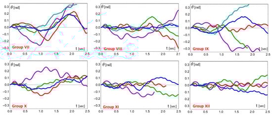 Rotation time histories ϑ(t) diagrams. Groups of conditions VII–XII (Table 3).