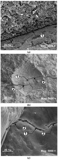4.2.2. Characteristics of Microcracks Correlated with the Type of Stresses Occurring in the Damaged Element