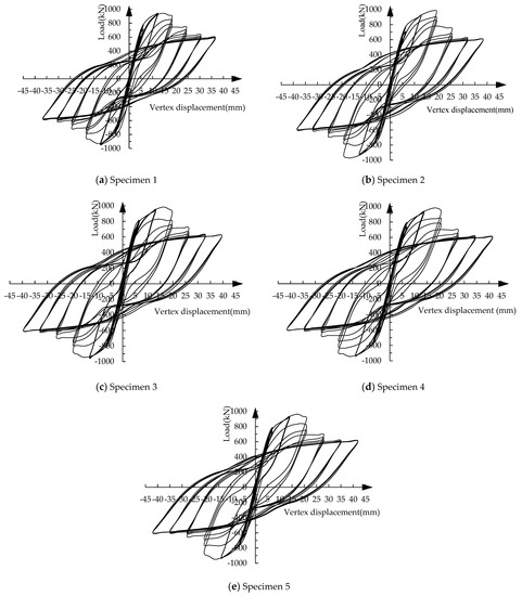 4.2. Load–Displacement Hysteresis Curves under Low Cyclic Loading