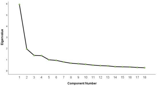 According to the Construction Industry Development Board, out of Malaysia’s total of 39,158 small construction enterprises, around 80% are engaged in minor construction projects (CIDB). The 15 obstacles to DTT discovered via interviews were the subject of a preliminary study. A preliminary survey with closed-ended questions was developed from a list of 15 obstacles to DTT. Although 250 pilot survey questionnaires were sent out, it was judged that a sample size of at least 100 will be sufficient. All respondents were employed by relatively obscure Malaysian building firms. A total of 152 real pilot surveys were conducted from 250 divisions. Data from the pilot survey were assessed using exploratory factor analysis (EFA). Instead of forcing a structure onto the data, exploratory factor analysis (EFA) investigates the likely underlying factor structure of a set of observed variables and whether the suggested combination of variables or features is acceptable. The DTT barriers of 15 are within the permitted range of 20 to 50, making EFA a valid test in this scenario when the sample size is among 150 and 300 [,]. The sum of the replies multiplied by the number of questions in the survey should be larger than the sample size [,]. Because 152 was larger than 120, the data from this pilot survey are adequate for EFA assessment. The Kaiser–Mayer–Olkin (KMO) and Bartlett’s Tests were performed to find whether the sample was representative and whether or not its members were statistically similar. According to Thiong’o and Rutka (2022), the KMO test index may vary from 0 to 1, with findings greater than 0.6 being regarded adequate for elucidating the nature of correlations among variables []. Bartlett’s Test, a factor analysis sphericity evaluation method, accepts a p-value of less than 0.05. EFA, KMO, and Bartlett’s Test were all performed using SPSS 24.0.