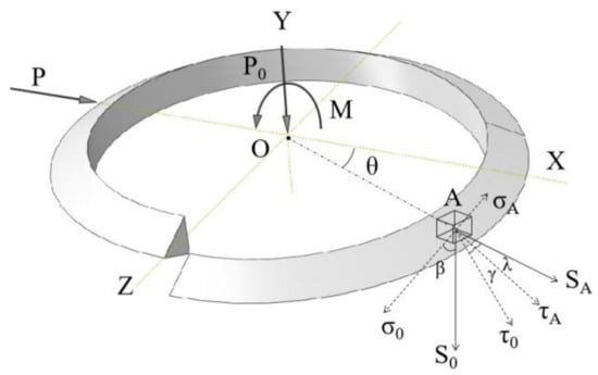 When the value range of θ is [180°, 360°], the direction of action of P is just the opposite to that in Figure 3, so the solution is somewhat different. The ≥ symbol in (11) should be replaced by > symbol, and then the coefficient G is obtained, so as to obtain the value of θ in the range of [180°, 360°].