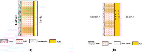 Schematic representation of double layer of PCM location in wall (a) Case 1 and (b) Case 2.