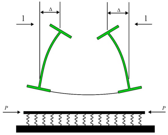 In the search for a new strategy for determining the LDB elastic critical moment, Hanswille et al. [] developed a proposal similar to Roik et al. [] using the inverted U-frame model to represent the composite beam. However, the authors deduced their procedure through the elastic foundation-beams theory (Figure 12).