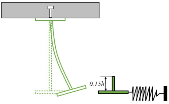 Williams and Jemah [] presented a proposal based on Svensson’s method []. The authors considered that in addition to the compressed flange, a 15% portion of the web could also be analyzed as a column under compression (Figure 11). The proposition of Williams and Jemah [] is presented in Equation (13). The slenderness parameter (λel) is obtained as described in Section 2.1.1.
