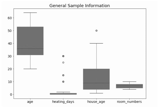 General information of the selected sample. The figure shows box plots of the information gathered during the fieldwork stage from the sample. The black line within the box represents the mean. The circles represent the outliers.