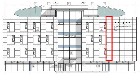 In order to visualize the mentioned calculations in this study, the southeastern part of the façade with an air gap was selected on a building of The South Moravian Innovation Center in Brno (Purkyňova, 621 00 Brno-Medlánky). Brno is located in the temperate climate zone of Central Europe and has a mild continental climate.