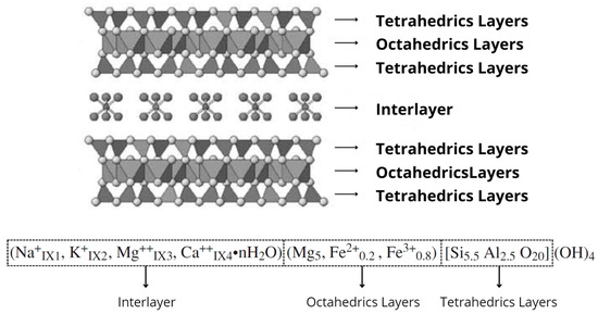 Vermiculite presents a variety of chemical compositions because of the elements contained in the original mica formation and chemical changes during weathering and ion exchange [14]. Hindman [14] proposed a common chemical formula for vermiculites based on the analysis of over 60 vermiculites (Figure 2).