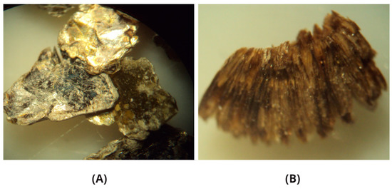 Figure 4. Fragments of crude vermiculite (A) and expanded vermiculite (B) under a microscope [26].