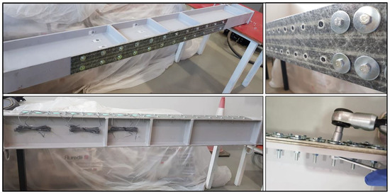 Pictures of fastening the of the HFRP strips to the bottom steel flange.