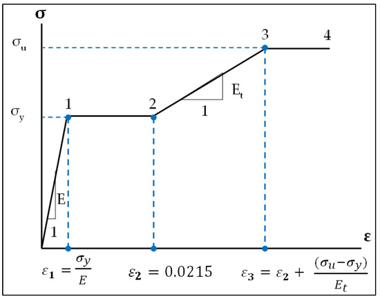 - Foster, A.S.J.; Gardner, L.; Wang, Y. Practical strain-hardening material properties for use in deformation-based structural steel design. Thin-Walled Struct. 2015, 92, 115–129. [Google Scholar] [CrossRef]