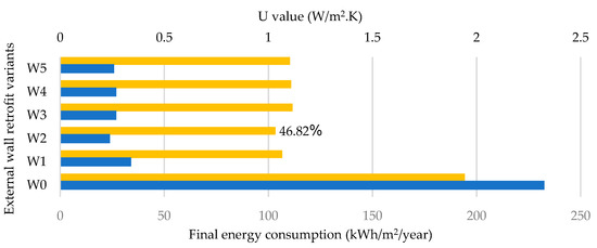 According to the Belgian studies on the existing EU building stock conducted by the Buildings Performance Institute Europe (BPIE) [52], old building stocks aim to meet the set renovation targets at the rate of 5–5.5% by 2030. The authors support the notion of increasing the energy efficiency of the old components by simultaneously offering energy conservation and energy generation solutions with resultant net-zero energy. Upholding retrofitting as a cost-effective approach, four different simulation case scenarios were developed (Table 6) (Figure 8).