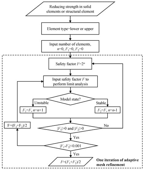 - Sloan, S.W. Upper bound limit analysis using finite elements and linear programming. Int. J. Numer. Anal. Methods Geomech. 1989, 13, 263–282. [Google Scholar] [CrossRef]