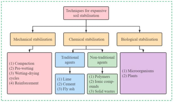 A flow chart of expansive soil stabilization techniques.