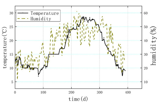 Time-history plots of the temperature and humidity of the atmosphere of the laboratory room.