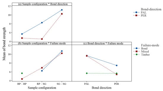 Interaction plot between sample configuration, bond direction and failure mode on bond strength.