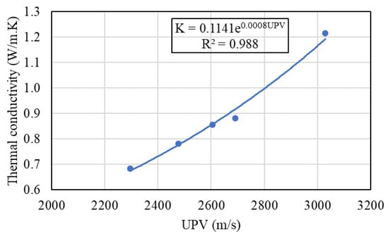 where K is thermal conductivity (W/m·K) and UPV is ultrasonic pulse velocity (m/s).