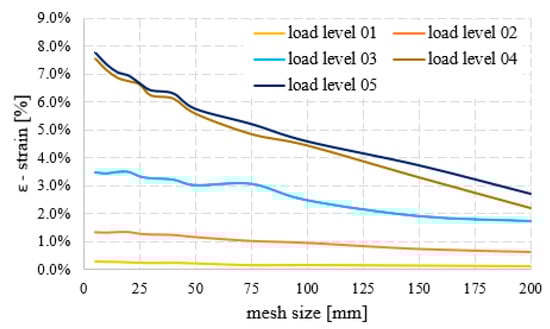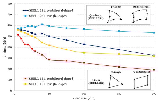 - Mesh-independent stresses are determined and evaluated on a graph depending on the applied mesh size.