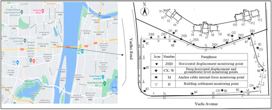- Long, L.; Li, Z.D. Monitoring and deformation law research of a deep foundation pit project in Changsha. Build. Struct. 2020, 50, 133–137. [Google Scholar]