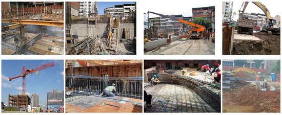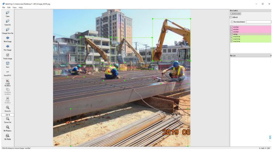 Four hundred sixty-one job site images were collected from the above sources (Figure 9). Feasible data were extracted from the images in the preliminary classification. The job site images collected were manually tagged for workers, machines, and rebar using the image tool provided in “LabelImg.” In addition, movements were selected and tagged for classes.