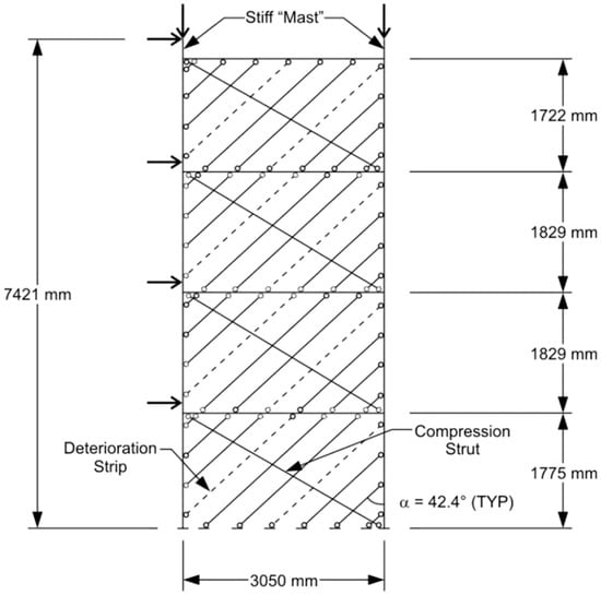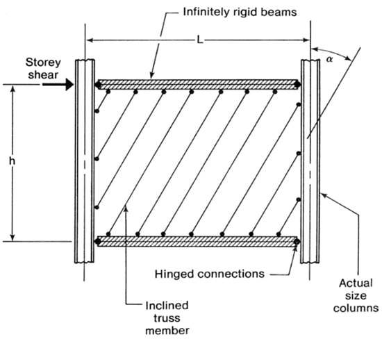 - Shishkin, J.J.; Driver, R.G.; Grondin, G.Y. Analysis of Steel Plate Shear Walls Using the Modified Strip Model. J. Struct. Eng. 2009, 135, 1357–1366. [Google Scholar] [CrossRef]