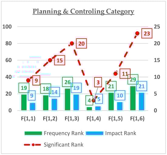 | F(1,2) | Inadequate planning—poor site management | 3.24 | 18 | 2.76 | 14 | 8.94 | 15 |