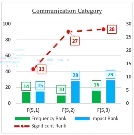| F(5,1) | Poor communication between clients, consultants, and contractors | 3.31 | 14 | 2.73 | 15 | 9.01 | 13 |