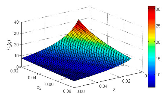 where is defined in Equation (11). is the mean of frequency variation and is zero (); the parameter is its standard deviation, and