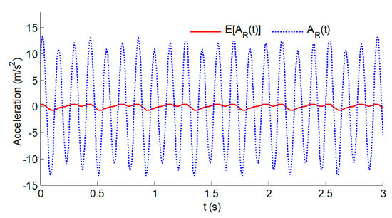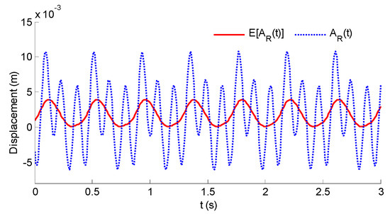 It is difficult to calculate the random responses in design. Therefore, the provision of the mean responses of the structure is expected. It is assumed that , , and are the three independent random variables at the beginning of this paper. Meanwhile, the randomness for the phase lag and phase angle is not considered in the evaluation of the structural random response. Therefore, the mean of the random displacement of the structure shown in Equation (11) is