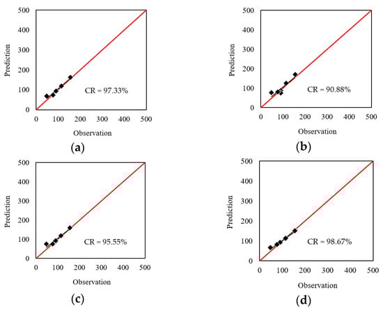 The results of the testing phase were similarly evaluated. According to the obtained RMSEs of 9.14, 14.66, 10.51, and 7.39, as well as the MAEs of 6.83, 11.70, 7.17, and 4.12, it can be deduced that all models could predict the TD