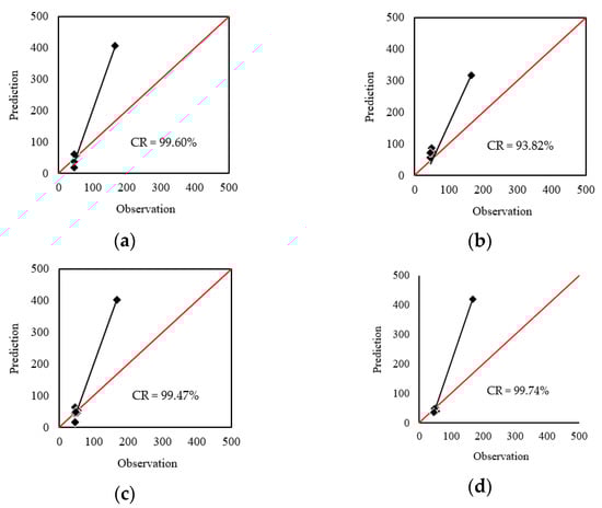 Figure 6. Referring to the CR values of 99.60%, 93.82%, 99.47%, and 99.74%, the products of all models were in good harmony with the real values. In this phase, the WCA-2TMLP, despite achieving the smallest MAE and the largest CR, obtained the largest RMSE. However, based on the better performance in terms of two indices (out of three), the superiority of the WCA-2TMLP was evident here, too.