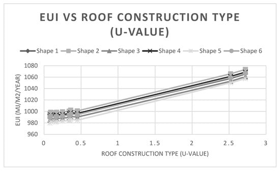 Table 5 shows the material properties used in energy simulation, and these include the major building components such as roofs, walls, floors, and glass type. Different types are measured by U-Value, which indicates the thermal transmittance of the material [].
