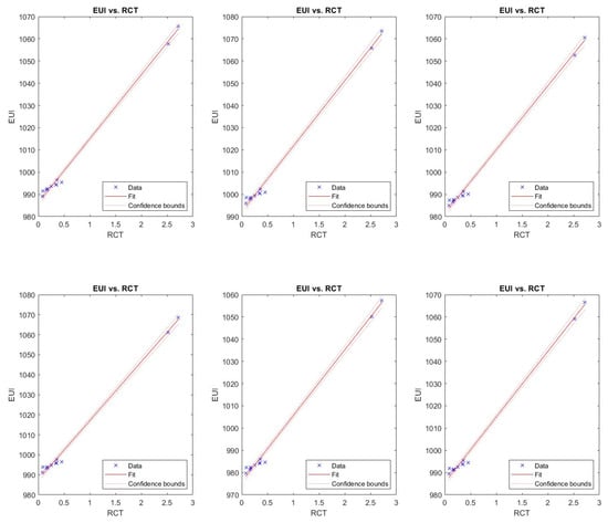Multiple regression models have been applied widely in different areas of energy analysis, such as residential building retrofit, heat load prediction and building energy usage estimation, etc. Walter and Sohn used a multivariate linear regression model to quantify the contribution of each building variable to the total energy usage. However, the model is not validated by the post-retrofit energy data []. Martinez et al. applied the same technique to assess the energy performance results of a residential house after retrofit and found that upgrading building envelopes increase energy savings []. Jaffa et al. also developed an accurate polynomial model summarizing the influence of heat consumption []. Lam et al. studied the energy consumption of office buildings in different climates in China. They imported 12 design variables, including building loads, HVAC system, etc., and surprisingly found that the difference between regression prediction and DOE simulation is within 10%. The result implies that the regression models developed can be used to estimate the likely energy savings or consumption during the initial design stage when different building schemes and design concepts are being considered [].
