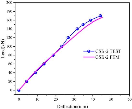 - Accurate finite element models of the overhanging beams with ordinary studs and MURSP connectors were established while fully considering the nonlinearity of the materials and the contact relationships between the components, and the mechanical properties of the test beams were analyzed. The accuracy of the finite element models was proven by comparing the results.