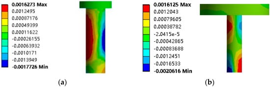 - The finite element analysis showed that the ordinary stud and the MURSP connector exhibited different stress and deformation states in the negative-moment region of the composite beams. The ordinary stud exhibited bending deformation, while the MURSP exhibited shear deformation. Under the same load, the displacement difference between the top and bottom of the latter was approximately 3.7 times that of the former.