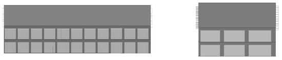 In the present study, we use building design software—Design Builder (V7, Designbuilder Software Limited, Stroud, UK) to model and calculate the energy consumption of the present researched passive building in severe cold region. A uniform flat roof, north-south glass curtain walls, and large numbers of small-sized glass windows are applied to establish the passive building, as illustrated in Figure 3. The north-facing offices and meeting rooms are relatively small, whereas the south-facing offices are bigger with two reception rooms where relatively larger-scaled glass curtain walls are adopted for maximum inward light capture, meanwhile, adjustable external sunshade louvers are installed outside.