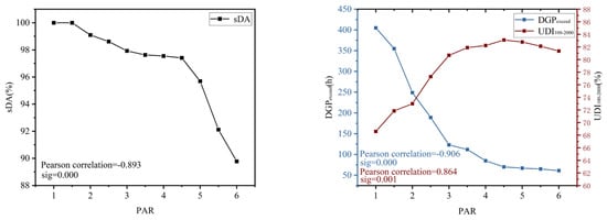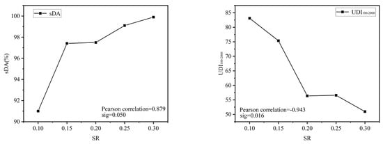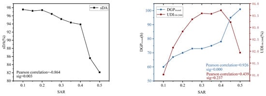 The effect on sDA, UDI and DGPexceed is large. The sDA was negatively correlated with SAR. The results showed that sDA was maintained at higher light levels when the SAR was in the range of 0.1~0.4, which was conducive to improving the average natural light performance of the overall waiting hall. UDI shows a trend of increasing at first and then decreasing. When the value of UDI100–2000 is significantly increased between 0.1 and 0.3, the value of SAR in the range of 0.3~0.4 greatly increases the proportion of data with effective illumination on the working surface throughout the year, while the probability of uncomfortable glare is smaller. In addition, SAR was found to have the most important effect on sDA compared to other architectural design parameters.