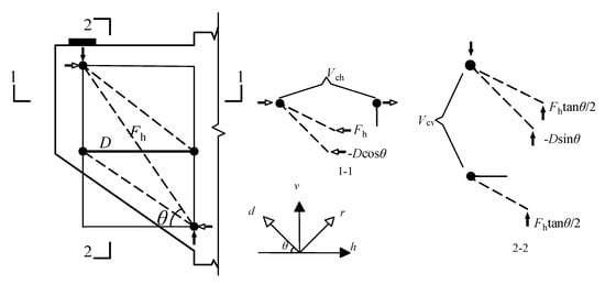 where D is the compression force in the diagonal strut; Fh is the tension force in the horizontal ties. Similarly, the horizontal force can be expressed as:
