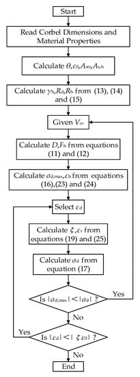 The above equilibrium conditions, constitutive laws and compatibility conditions were used to determine the shear-bearing capacity of the corbel. Figure 6 shows the flowchart of the solution process, which was divided into five major steps as follows: