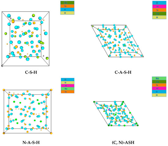 Figure 19. Molecular structure of C-S-H, C-A-S-H, N-A-S-H, and C, N-ASH.