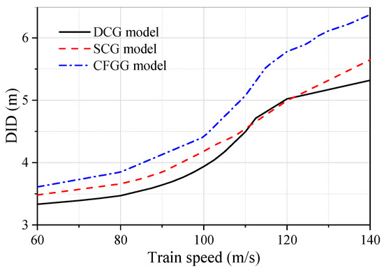 - The DID stayed around the 3–6 m range at all speeds and increased with the increase in the train speed. The ground reinforcement also led to an increase in the DID.