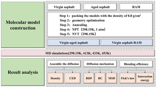 Consequently, the objective of this research is to investigate the nanostructure characteristics and molecular arrangements of polar components between virgin asphalt and RAM during the diffusion process through MD simulation and quantitatively evaluate their blending efficiencies. Specifically, this study aims to: