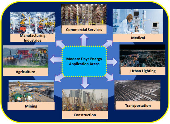 A glimpse of the key modern human civilization application areas where energy is one of the most important elements.