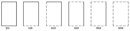 First, the wind effect test is performed with the open structure, without wind screens (Option (0000)); then, the test is consequently performed for the structure with one mounted screen on the long side (Option (0010)), with two screens on parallel sides (Option (1010)), two screens on adjoining sides (Option (0110)), three screens (Option (1110)), and with the structure closed all around (Option (1111)).