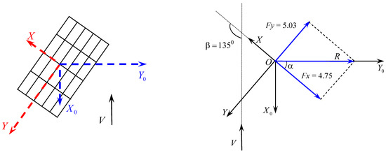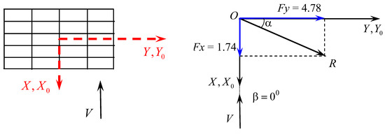 Figure 12 and Figure 13 show values and directions of forces of Fx, Fy in the aeroelastic model in the XOY plane for the angles of wind flow attack equaling 00 and 1350, respectively, and for an open aeroelastic model (Option (0000)).