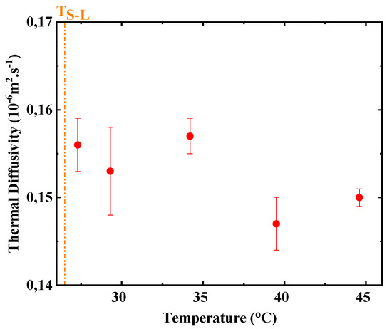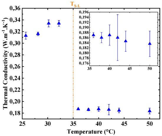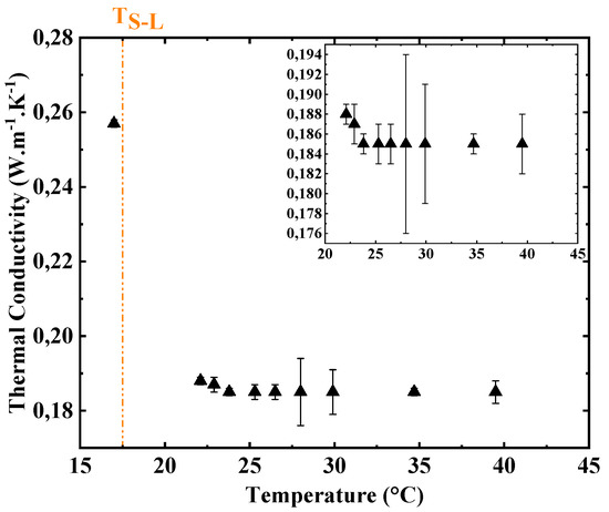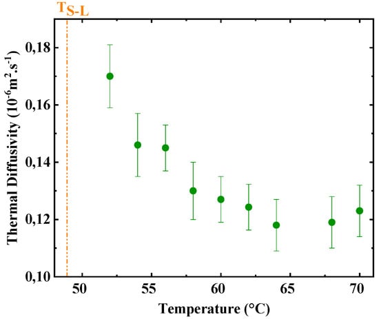 The heating power and the measurement time were 12 mW and 4 s, respectively. These parameters ensure a temperature increase of the sensor without the onset of the natural convection in the liquid paraffin. More details about the selection criteria of the parameters of the hot disk measurements in the liquid state can be found in the literature [45,46,47]. The measurements were carried out at least three times.