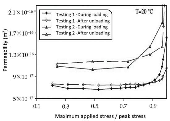 - Picandet, V.; Khelidj, A.; Bastian, G. Effect of Axial Compressive Damage on Gas Permeability of Ordinary and High-Performance Concrete. Cem. Concr. Res. 2001, 31, 1525–1532. [Google Scholar] [CrossRef]